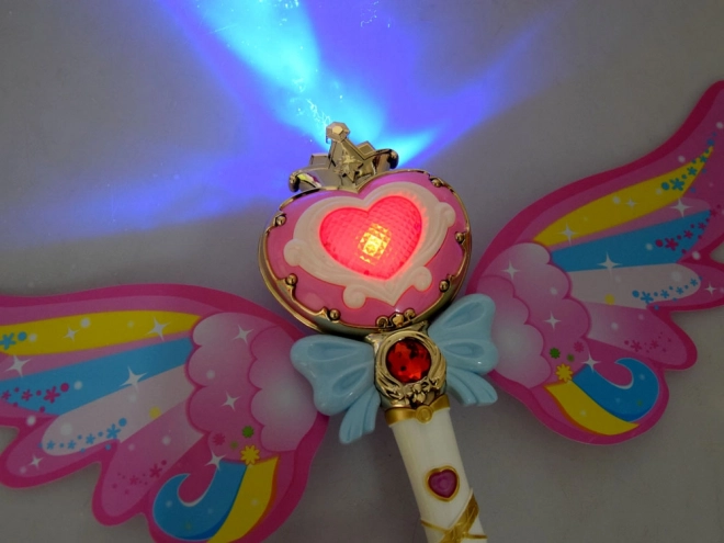 Prie lazdelės galima pritvirtinti spalvingus sparnus, kurie sustiprina magiško žaidimo įspūdį.