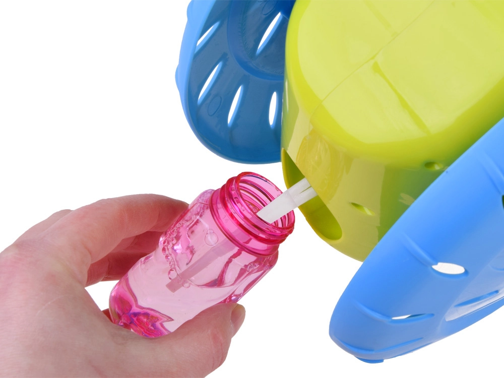 Mėgaukitės valandomis linksmybių su šiuo stumdomu vežimėliu, kuris vaikštant kuria burbulus. Žaislas sukurtas taip, kad lavintų motorinius įgūdžius, skatintų norą vaikščioti ir žadintų vaizduotę. Taip pat skamba linksma melodija, o spalvotos lemputės mirksi.