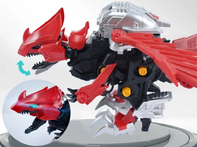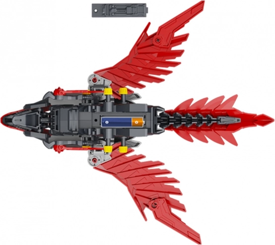 Surinkus raptorius atgyja: plazdena sparnais, atveria nasrus ir judina uodegą. Mechanizmas, maitinamas 1× AAA, suteikia dinamiško žaidimo ir įspūdingą modelio pateikimą.