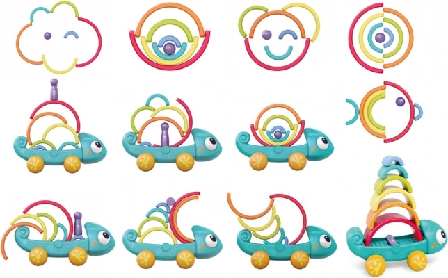 Šis spalvingas chameleonas siūlo daug žaidimo būdų, todėl išlaiko vaiko dėmesį ir skatina kūrybiškumą. Žaisdamas su chameleonu vaikas gali lavinti smulkiąją motoriką, erdvinę vaizduotę, spalvų atpažinimą ir lyginimą.
