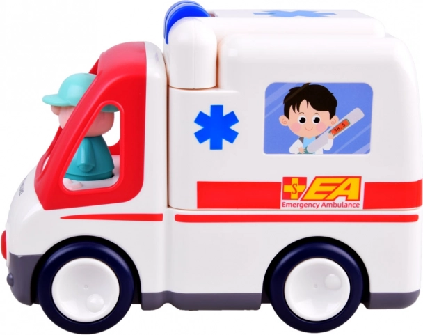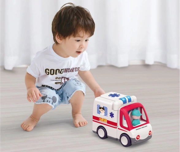 Rinkinyje yra paciento ir gelbėtojo/vairuotojo figūrėlės bei praktiški apžiūros įrankiai. Vaikai gali atkurti visą iškvietimą – nuo atvykimo ir apžiūros iki pervežimo neštuvais. Interaktyvūs mygtukai su širdelės, injekcijos ir klaustuko simboliais slepia su sveikata susijusius garsus, kurie skatina pažinimą ir mokymąsi žaidžiant.