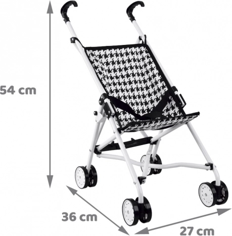 Atraskite puikų draugą kūrybiškam žaidimui – sulankstomą lėlių vežimėlį su juodai baltu pepito raštu. Tvirtas metalinis rėmas, patogios rankenos ir saugos diržas užtikrina, kad lėlė bus saugi, o vaikas mėgausis važiavimu be pastangų. Dėl kompaktiškų matmenų vežimėlį lengva nešiotis ir laikyti.
