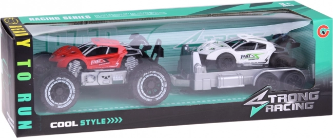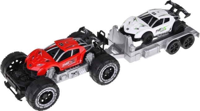 Visureigis ir sportinis automobiliukas su priekaba suteikia pramogų kiekvienam mažajam automobilių gerbėjui. Automobiliukai pagaminti iš plastiko, priekaba idealiai tinka sportiniam automobiliui vežti į varžybas.