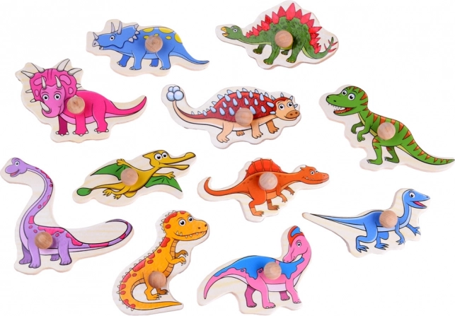 Atraskite priešistorinių būtybių pasaulį su kokybiška medine dinozaurų dėlione. Detalės kurtos draugišku, pasakišku stiliumi, o kiekviena turi patogią rankenėlę, kad vaikams būtų lengva pakelti ir įdėti atgal į išpjovas. Žaisdami vaikai lavins formų skyrimą, pastabumą ir akies–rankės koordinaciją.