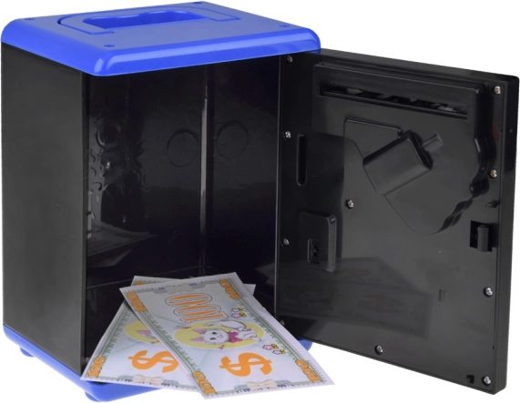 Šis vaikiškas mini seifas imituoja tikrą banko seifą ir skatina vaikus reguliariai taupyti. Banknotai automatiškai įtraukiami įstačius juos į angą, monetas galima mesti į viršutinę arba priekinę angą. Atidarymas vyksta įvedus PIN kodą (numatytasis 0000), po to seifas pataria balsu ir šviesomis, kad būtų lengva valdyti.