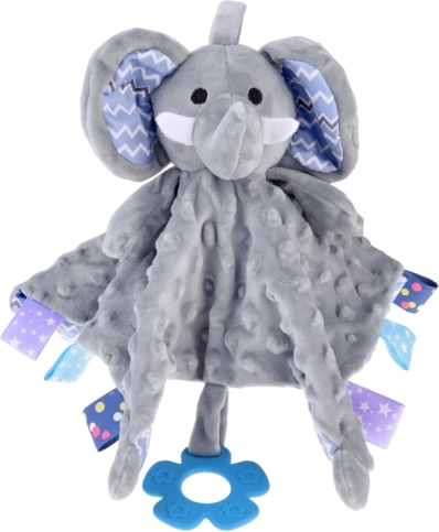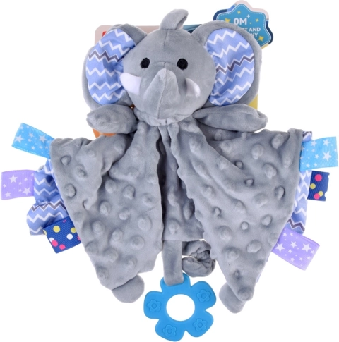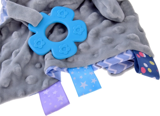 Vystyklų migdukas triušiukas su etiketėmis ir silikoniniu kramtuku kūdikiams