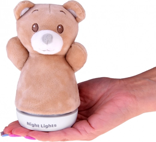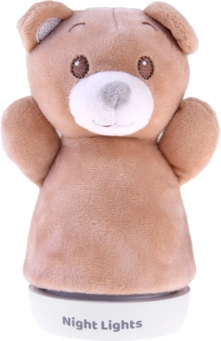 Paprasta stabili bazė leidžia tvirtai pastatyti ant naktinio staliuko ar lentynos. Šviesa automatiškai keičia spalvas (pvz., mėlyna, žalia, raudona, geltona) ir kuria jaukią atmosferą mažiems vaikams ir kūdikiams. Pliušinį užvalkalą galima lengvai nuimti ir išvalyti.