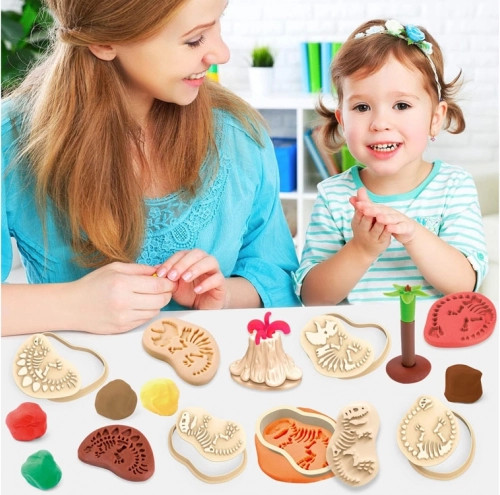 Atraskite priešistorinį pasaulį su žaismingu modelino rinkiniu, kuris leidžia vaikams įspausti į masę detalius dinozaurų ir jų pėdsakų atspaudus. Dėka volelio, formelių ir spaudukų sukuriamos realistiškos fosilijos, o ugnikalnis ir medis papildo visą žaidimo scenarijų. Rinkinys lavina kūrybinį mąstymą, susikaupimą ir smulkiąją motoriką.