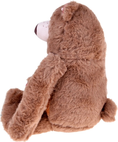 Meškiukas padengtas švelniu rudu kailiuku, kuris malonus liesti ir kviečia prisiglausti.