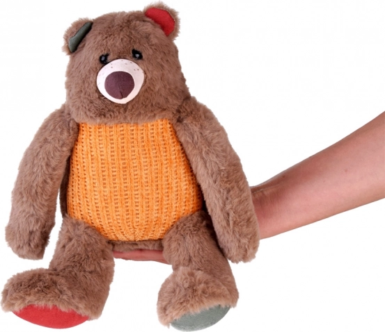 Mielas pliušinis meškiukas Teodoras – puikus bičiulis ir mažiems, ir dideliems vaikams. Šis minkštas rudas meškinas idealiai tinka apkabinimams ir suteikia jaukumo bei saugumo jausmą. Ryškios spalvos – oranžinis megztas megztinis, žalios ir raudonos ausytės bei letenėlės – suteikia žaislui linksmą išvaizdą.