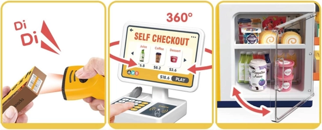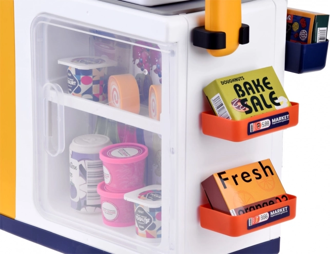 Uždaroma šaldymo dalis talpina jogurtus, sultis, desertus ir kitus maisto maketus. Idealu žaidimui „kavinė“, „parduotuvė“ ir savitarnos kasai.