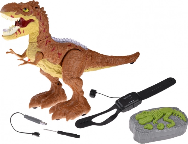 Atraskite pramogas su T-Rex, kuris juda pirmyn/atgal, sukasi 360°, riaumoja ir dėl pašviestų nasrų leidžia švelnius garus, kuriančius ugnies iliuziją. Dėl dviejų valdymo būdų – klasikinio RC pulto ir riešo jutiklio – žaidimas maksimaliai intuityvus ir įtraukiantis.
