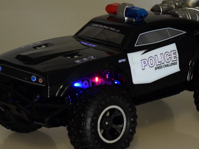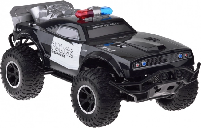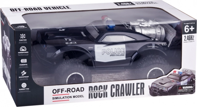 Rinkinyje yra policijos monster truck, 2,4 GHz nuotolinio valdymo pultas, 500 mAh 7,4 V akumuliatorius ir USB įkroviklis.