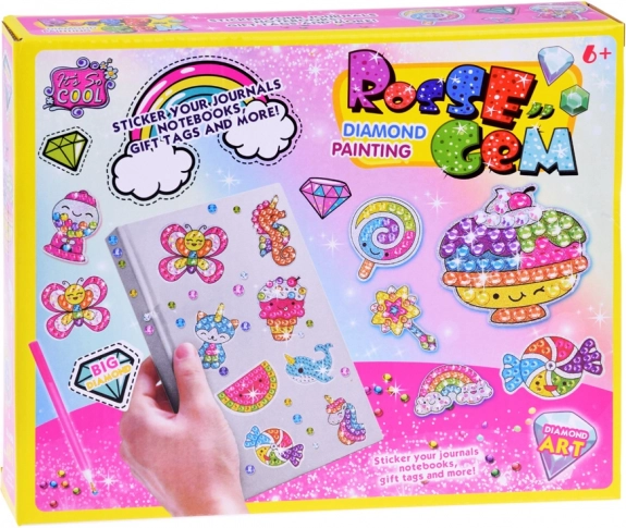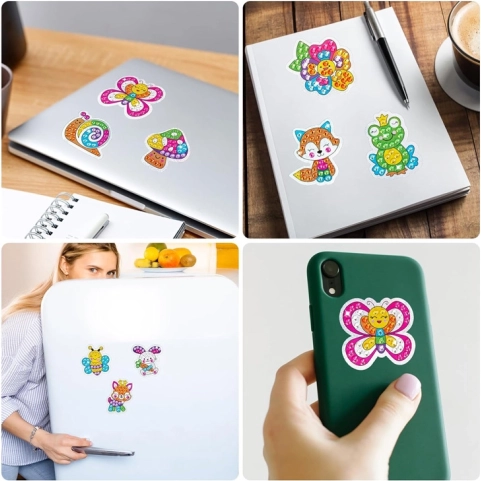 Šis rinkinys leidžia sukurti 12 nuostabių lipdukų naudojant ryškius deimančiukus. Tereikia pasirinkti tinkamą spalvą ir specialiu aplikatoriumi uždėti detales ant lipnios šablono dalies. Rezultatas – graži ir spalvinga dekoracija.