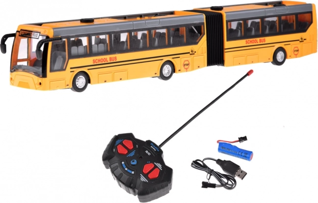 Linksmas nuotolinio valdymo mokyklinis autobusas – tai 36,5 cm ilgio modelis, kuris suteiks daug pramogų visiems didelių transporto priemonių entuziastams. Pagamintas iš plastiko, šis realistiškai stilizuotas autobusas važiavimo metu šviečia LED apšvietimu.