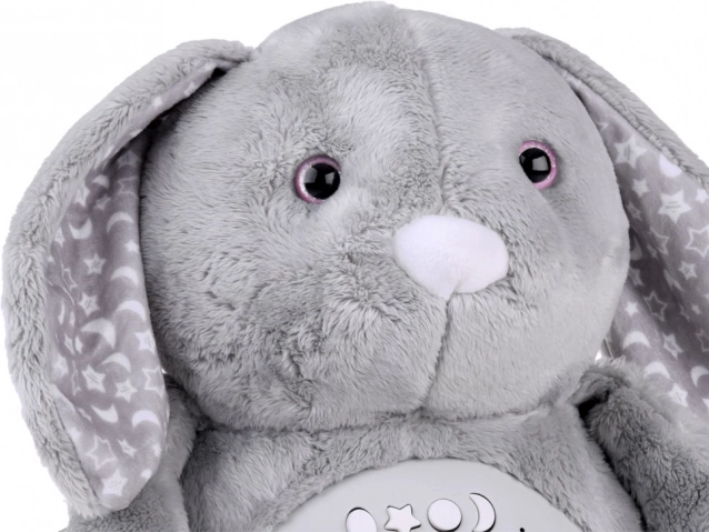 Šis minkštas pliušinis triušelis pagamintas iš švelnios medžiagos prislopintos pilkos spalvos, puoštas žvaigždžių ir mėnulio raštais ant ausų ir kojyčių. Akys yra plastikinės, o nosis siuvinėta, todėl žaislas atrodo ypač mielas. Dėl interaktyvaus skydelio, esančio triušelio pilvuke, jis tampa nepakeičiamu palydovu vaikams, kuriems sunku užmigti vieniems.