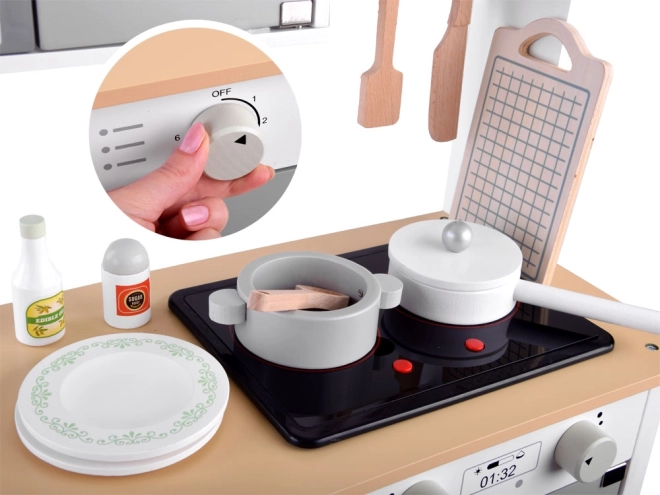 Medinė interaktyvi virtuvėlė yra ideali priemonė lavinti vaikų kūrybiškumą ir motorinius įgūdžius. Šis vaikiškas rinkinys atkartoja kasdienes veiklas, skatina vaizduotės žaidimą ir yra visiškai pagamintas iš natūralios medienos, taip užtikrinant saugumą ir ilgaamžiškumą.