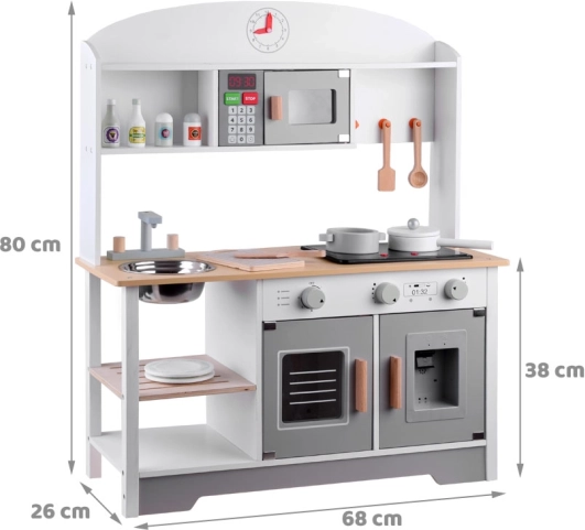 Ši vaikiška virtuvėlė estetiškai sukurta ir užtikrina ne tik puikų pramoginį laiką, bet ir prisideda prie vaiko raidos. Vaikai mėgsta mėgdžioti suaugusiuosius, o ši virtuvėlė leidžia žaisti gaminant maistą, tvarkantis ir atliekant kitas su namų ruoša susijusias veiklas.