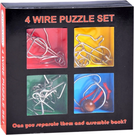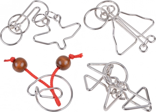 Rinkinyje yra kelių tipų vielinių galvosūkių su skirtingomis konstrukcijomis – nuo žiedų ir kilpų iki teminių formų. Kiekvienas vienetas – vis naujas iššūkis.