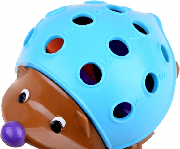Šis besišypsantis edukacinis ežiukas pradžiugins ir vaikus, ir tėvus. Vaikai mankština pirštus ir riešus įstatydami bei traukdami 12 didelių spyglių, kartu mokosi spalvų ir skaičių nuo 1 iki 12, dėka ant nugarėlės įspaustų skaičių. Žaislas pagamintas iš patvaraus, netoksiško plastiko ir pritaikytas mažoms rankoms.