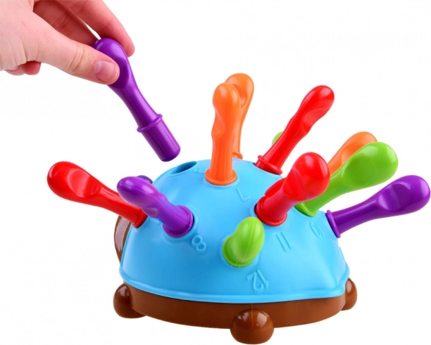 Mielas ežiukas su 12 spalvotų spyglių – interaktyvus žaislas vaikams nuo 18 mėn., lavinantis smulkiąją motoriką, akies-rankos koordinaciją, spalvų atpažinimą ir pagrindinį skaičiavimą. Spyglius lengva įstatyti ir ištraukti, o po žaidimo juos galite sudėti į vidų greitam tvarkymui.