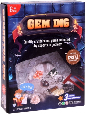 Šis kūrybinis rinkinys suteikia vaikams atradimo jaudulį tarsi tikruose archeologiniuose kasinėjimuose. Gipso bloke paslėpti spalvingi akmenys, kuriuos mažieji tyrinėtojai pamažu atskleis saugiais įrankiais. Puikus pasirinkimas namų pramogai ir mokymuisi.