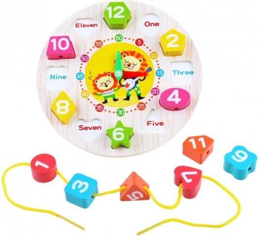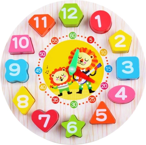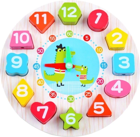 Atraskite išmanų lavinamąjį žaislą, kuris sujungia laiko nustatymo praktiką su skaičių, spalvų ir formų pažinimu. Patvarus medinis korpusas ir žaismingi gyvūnų motyvai iš karto sudomina vaikus, o įstatomos detalės ir judančios rodyklės lavina akių–rankų koordinaciją bei loginį mąstymą.