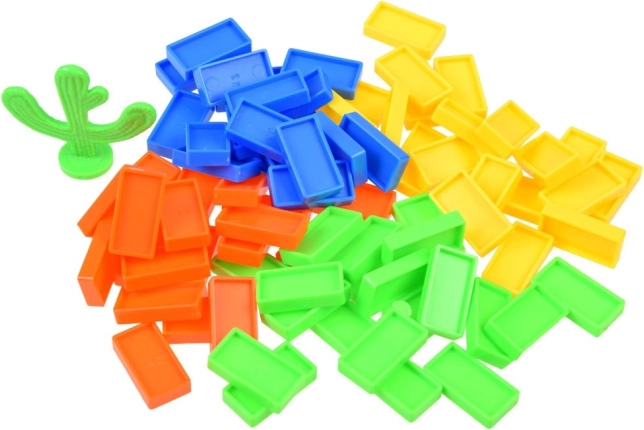 Rinkinyje yra 80 ryškių domino detalių, padavėjas patogiam pildymui, dekoratyvinė kaktuso jungtis ir pats traukinukas su permatomais elementais, atskleidžiančiais jo mechanizmą. Rinkinys lavina smulkiąją motoriką, kantrybę ir erdvinį suvokimą – puikiai tinka žaisti tiek vienam, tiek kartu.