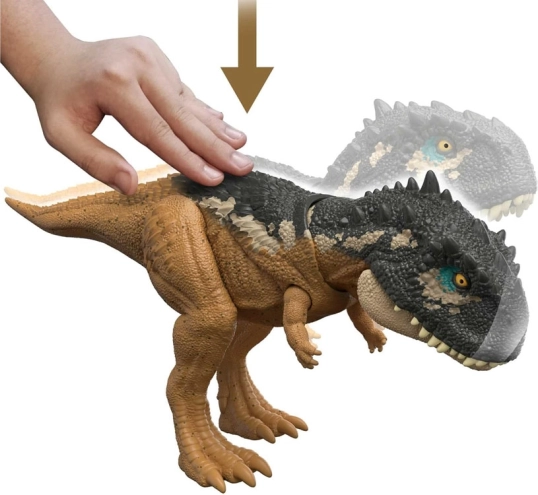 Dinozauras turi judančias dalis, leidžiančias sąveiką; pavyzdžiui, jo kūnas, uodega ir galva skleidžia garsus ir juda, kai juos paspaudžiate. Tai puikus papildymas tiek ekspozicijai ant lentynos, tiek veiksmo žaidimams.
