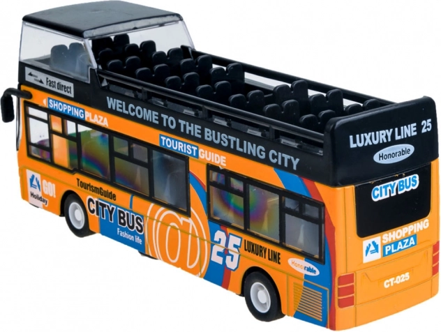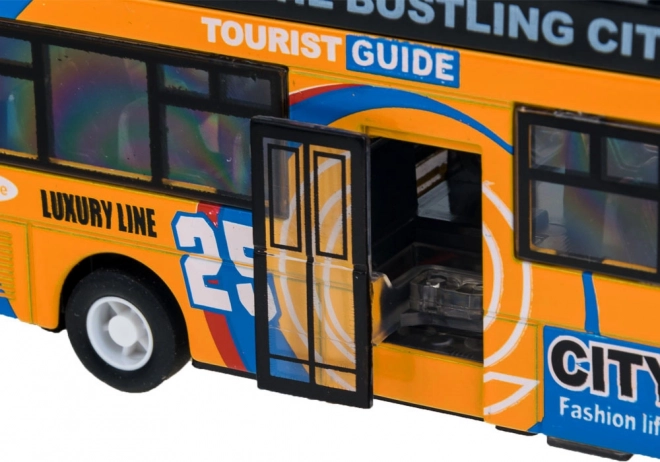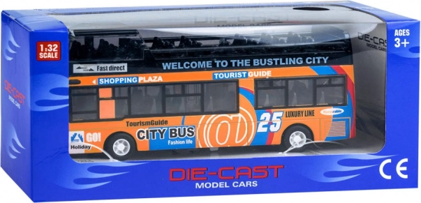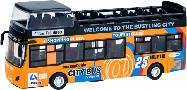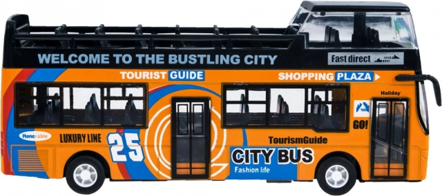 Šis detaliai atkurtas miesto dviaukščio autobuso modelis sužavės kiekvieną vaiką. Tvirta metalo ir plastiko kombinacija užtikrina patvarumą, o atidaromos stumdomos durys ir vidinis apšvietimas suteikia autentišką važiavimo įspūdį.