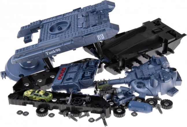 Šis detaliai sukurtas tankas suteiks begalę galimybių konstruojant ir žaidžiant. Modelis pagamintas iš kokybiško plastiko ir turi šviesos bei garso efektus, įskaitant važiavimo, pavojaus signalų, šaudymo ir kitų dramatiškų scenų elementų imitacijas. Rinkinyje yra atsuktuvas su keičiamais antgaliais, leidžiantis montuoti ir išmontuoti tanką. Pakuotėje taip pat rasite dvi mažas karines transporto priemones dar įvairesniam žaidimui.