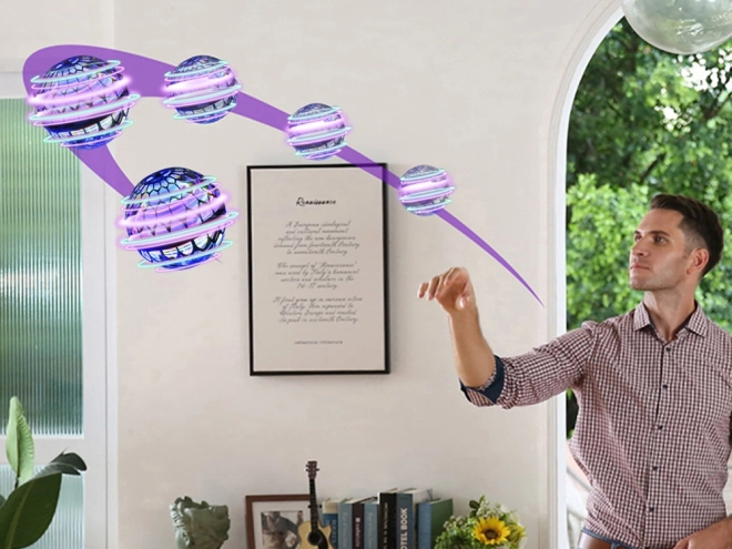 Šis interaktyvus UFO kamuolys suteikia daug pramogų vaikams ir suaugusiesiems. Išmanūs jutikliai pakelia jį virš delno, jis reaguoja į kliūtis, o saugus narvelis padeda atlaikyti smūgius. Integruotos LED lemputės kuria įspūdingus šviesos efektus, ypač išryškėjančius prieblandoje.