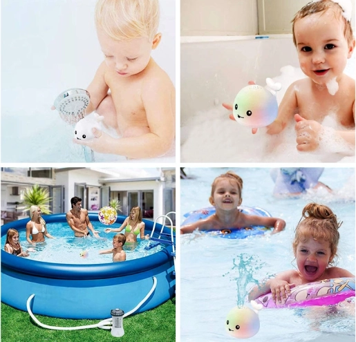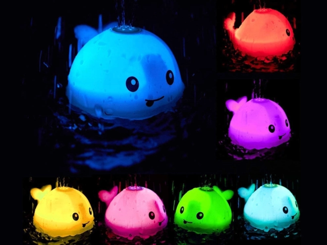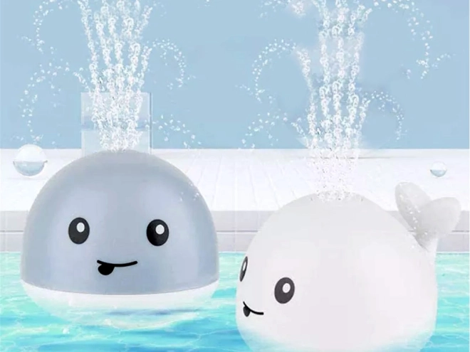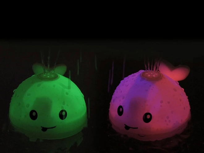 Panardintas banginis automatiškai įsijungia ir sukuria mini vandens čiurkšlę su besikeičiančiomis spalvomis – iškart patraukia dėmesį ir pradžiugina per kiekvienas maudynes.