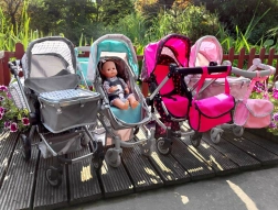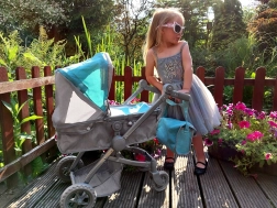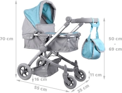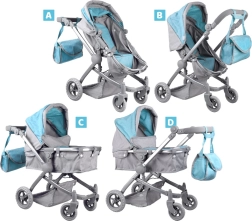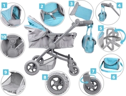 Stilingas ir stabilus lėlių vežimėlis su 4 viename funkcija lengvai keičiamas iš gilios gondolos į sportinį vežimėlį. Siūlo reguliuojamą rankeną (skirtingam vaikų ūgiui), sulankstomą stogelį, saugos diržus, pasukamus priekinius ratus lengvam vairavimui ir erdvų krepšį bei nuimamą dėkliuką aksesuarams. Lengva konstrukcija užtikrina patogų valdymą ir realistišką žaidimo patirtį.