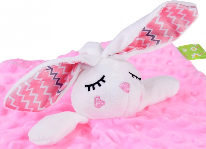 Minkštas pledukas su triušiuko galvute suteikia saugumo pojūtį ir padeda vaikui lengviau užmigti namuose ir kelionėse.