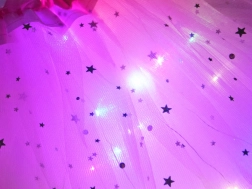 - Švelnus tiulis ir blizgi puošyba