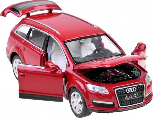 Atraskite detaliai pagamintą AUDI Q7 modelį, kuris suteikia tikrą žaidimo patirtį. Paspaudus ar atidarius dureles, įsijungia šviesos ir garsai – nuo garso signalo ir variklio užvedimo iki ritmiškai mirksinčio apšvietimo. Dėl pull back sistemos pakanka automobilėlį patraukti atgal ir paleisti – jis pats pajuda į priekį.