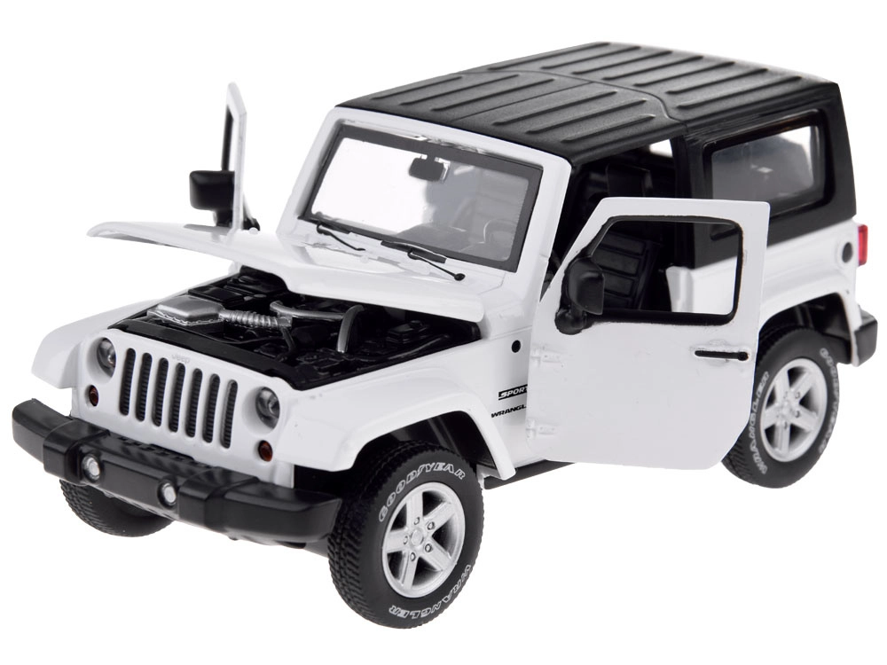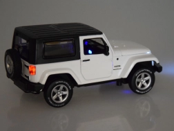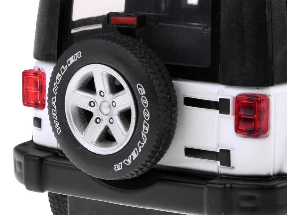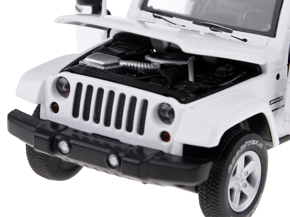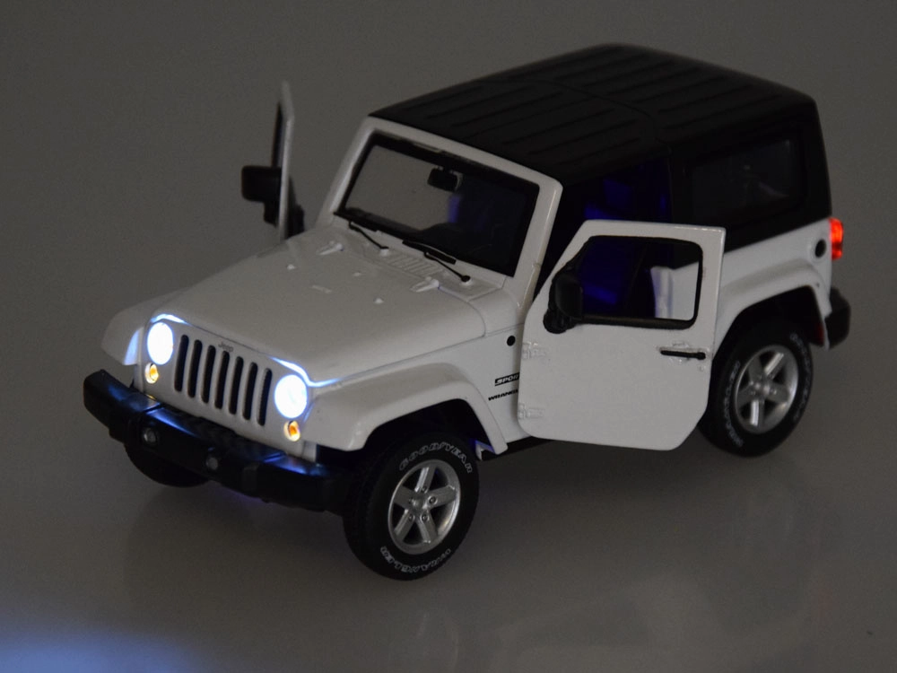 Jeep Wrangler 1:32 yra gražus modelis, kuriame didelis dėmesys skiriamas detalėms; jis suteikia realistinius garso ir šviesos efektus. Transporto priemonė turi atidaromas duris, variklio dangtį ir yra aprūpinta „pull back“ sistema, leidžiančia jai judėti lygiu paviršiumi. Atidarius duris įsijungia signalizacija su mirksinčiomis šviesomis, kas padidina žaidimo smagumą. Variklio ir interjero detalių pavaizdavimas suteikia žaislui autentiškumo.