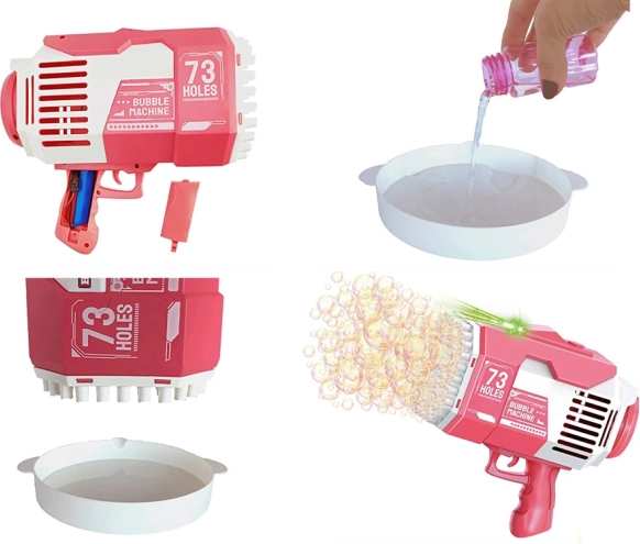 Patirkite begalinį smagumą su vaikišku burbulų pistoletu, turinčiu 73 angas. Elektrinis įkraunamo akumuliatoriaus maitinimas, paprastas valdymas vienu mygtuku ir gausi komplektacija užtikrina spalvingą burbulų šou sode, šventėse ir piknikuose.