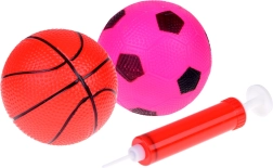 Du pripučiami kamuoliukai su pompa paruošti mėtymui ir paprastiems kamuolio žaidimams. Plunksninė lotka lavina taiklumą ir reakciją.