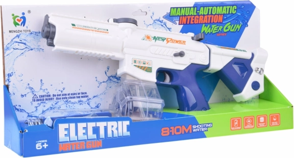 Šis elektrinis vandens pistoletas – puikus pasirinkimas vasaros linksmybėms. Su integruota talpa ir greitu pildymu jis visada paruoštas naudojimui. Ergonomiška konstrukcija patogiai laikoma rankoje ir tinka net vaikams.