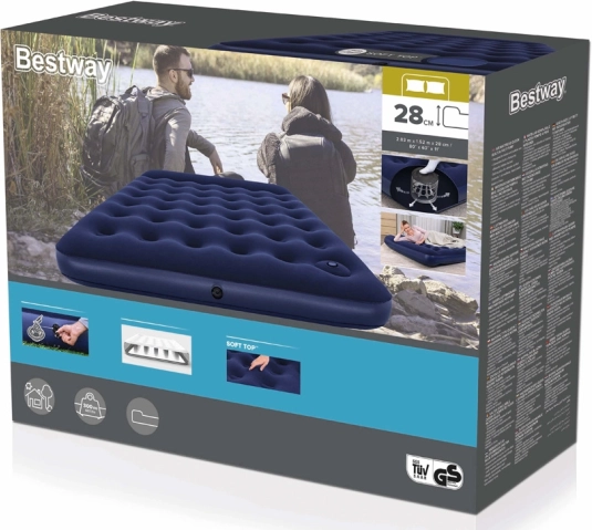 Praktiškas ir patogus dvivietis pripučiamas čiužinys, kurio matmenys 203 × 152 × 28 cm, užtikrins ramų miegą namuose ir kelionėse. Dėl integruoto kojinio siurblio jį lengvai pripūsite be elektros, coil‑beam konstrukcija pasirūpins stabilumu, o integruota pagalvė ir minkštas vinilo paviršius padidins komfortą. Dvikryptis vožtuvas palengvina greitą pripūtimą ir išleidimą.