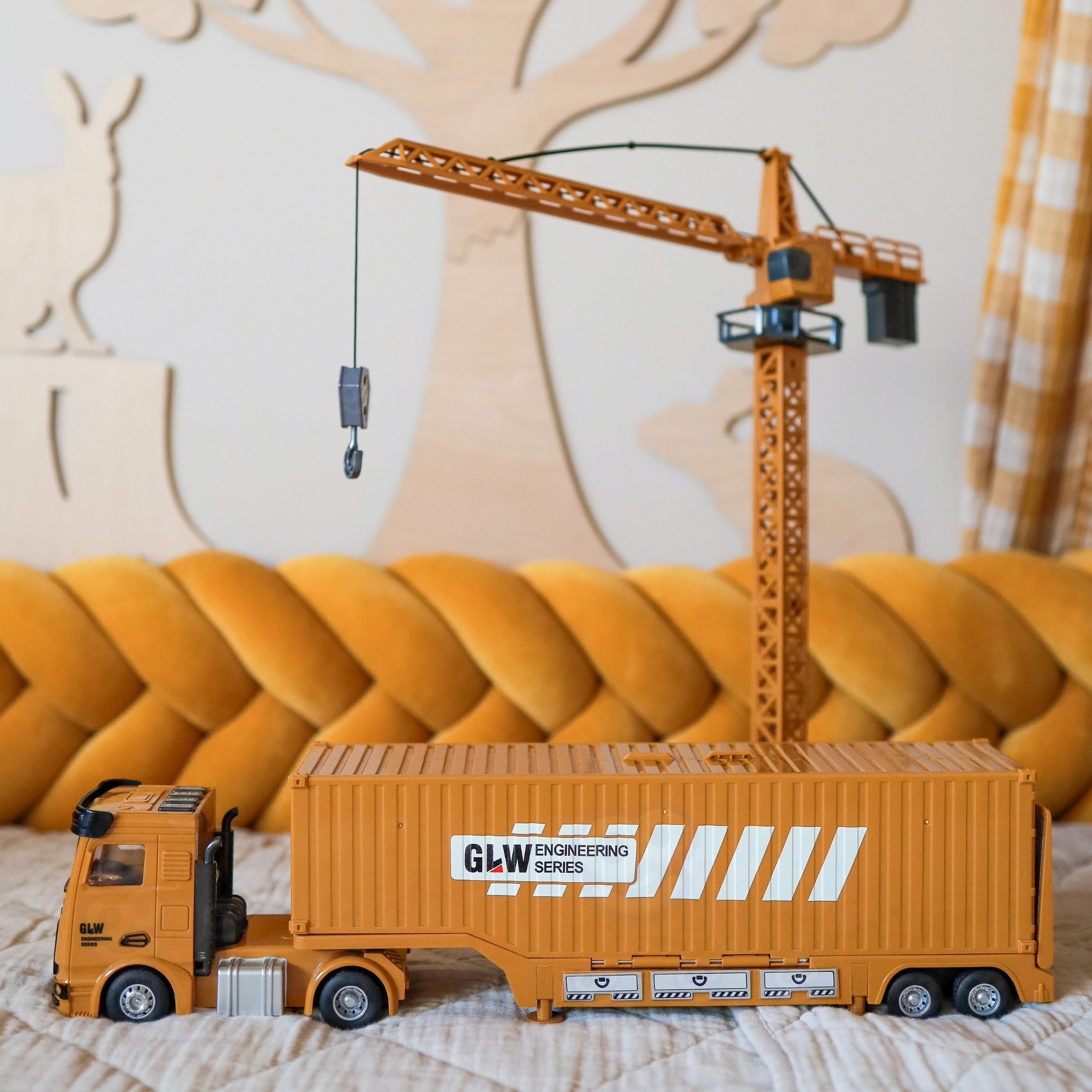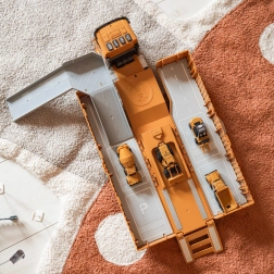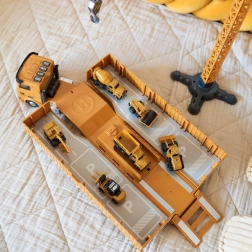 Atraskite interaktyvų statybų rinkinį, kuris pavers vaikų kambarį gyva statybviete. TIR vilkikas su atsiveriančiu konteineriu išskleidus virsta aiškia stovėjimo aikštele ir darbiniu plotu. Viduje rasite iššaunamą rampą mašinėlėms, ištraukiamus stabilizatorius tvirtam pagrindui ir daug sceninių elementų realistiniam žaidimui.