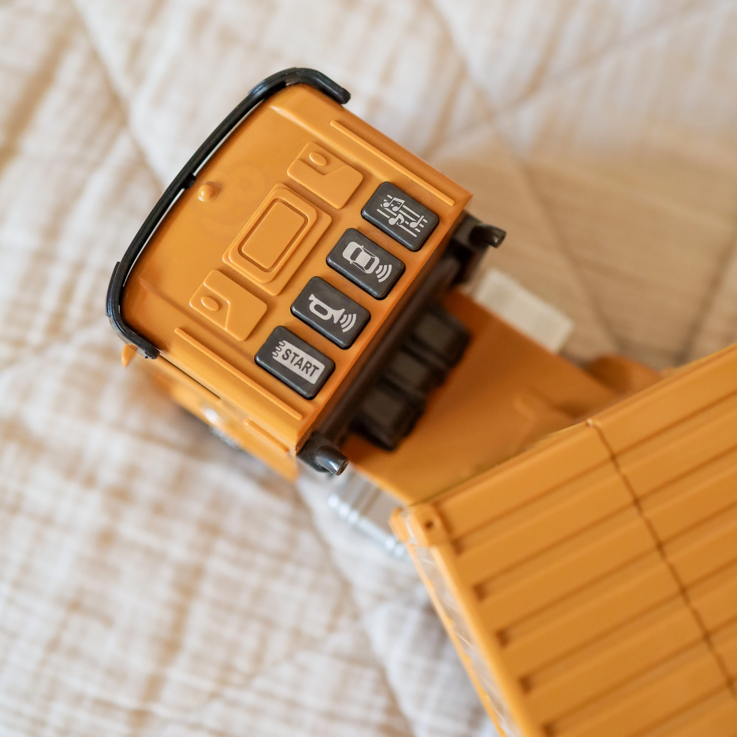 Keturi mygtukai įjungia signalą, važiavimo atbulomis garsą ir linksmą melodiją. Mirksinčios raudonos šviesos sustiprina dinamišką žaidimo patirtį.