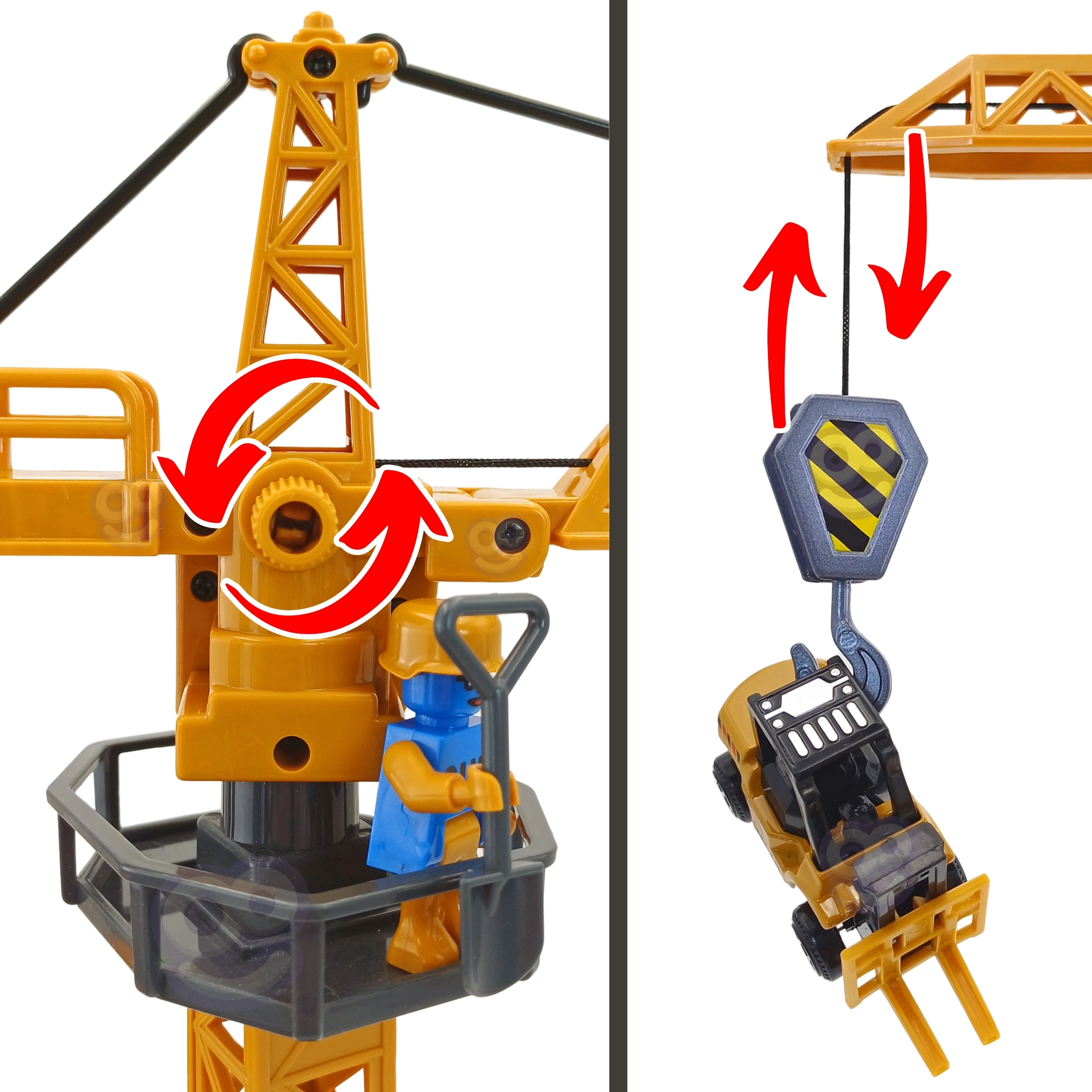 Aukštas kranas kelia priedus, sukasi ir kuria realistišką statybvietės atmosferą. Idealiai tinka konteineriams ir statiniams kroviniams kelti.