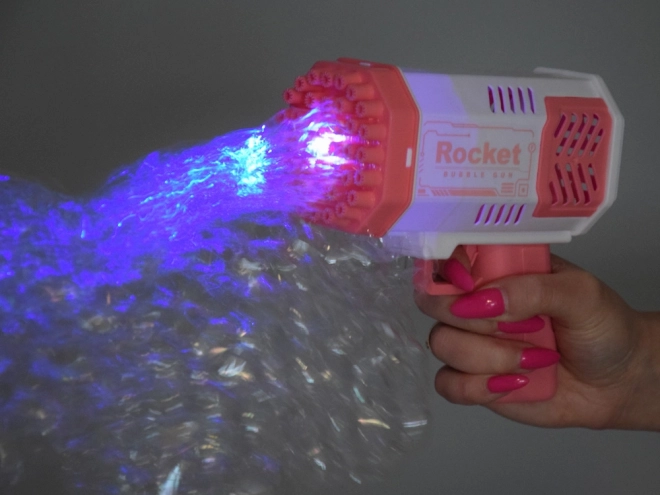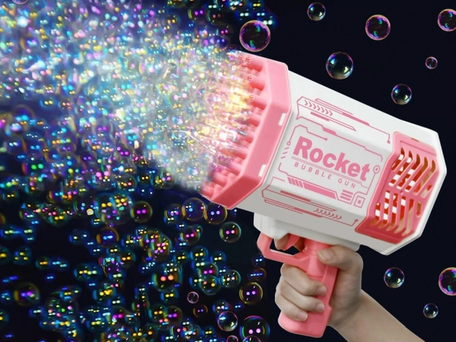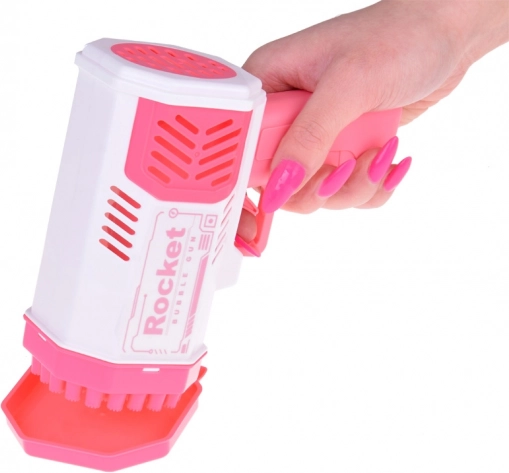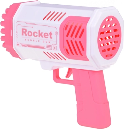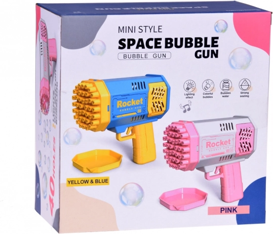 Šis unikalus burbulų pistoletas nereikalauja jokio integruoto skysčio rezervuaro. Kaip sukurti nuostabius vaivorykštinius burbulus? Tiesiog įpilkite nedidelį kiekį pridėto skysčio į rožinį dubenėlį ir pamirkykite jame priekinę pistoleto dalį. Tuomet nusitaikykite ir spauskite gaiduką. Jūsų akyse pasirodys neįtikėtinas vaizdas – iš 40 angų išskrenda apvalios, žvilgančios, spalvų pilnos formos, kurios pradžiugina kiekvieną žiūrovą!
