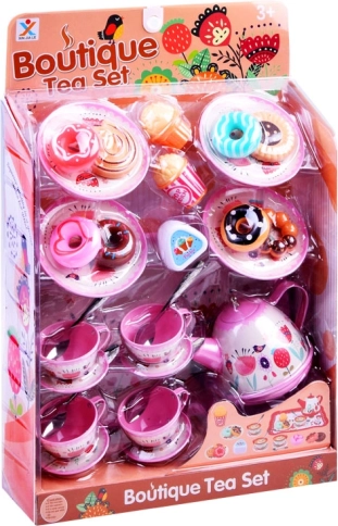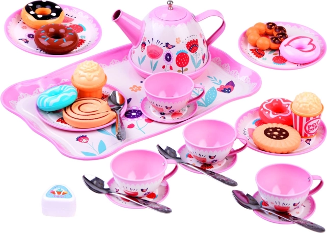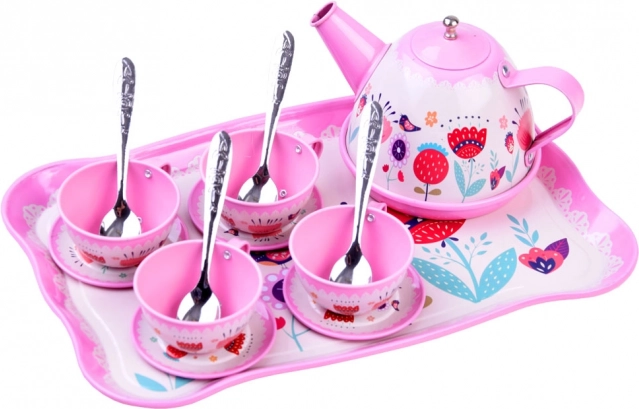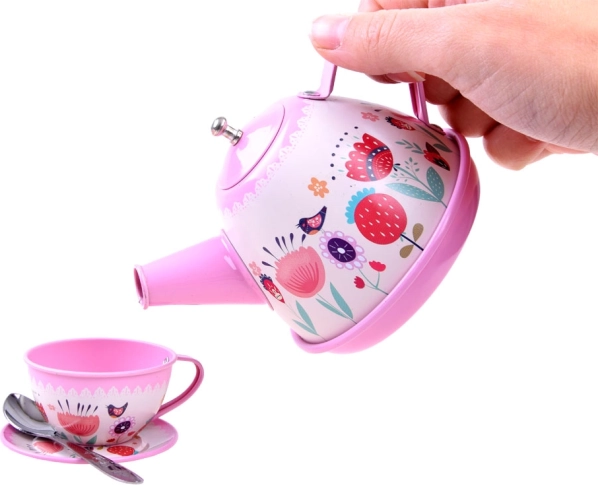 Rinkinys sukurtas mažiesiems šeimininkams, norintiems patiekti arbatą lėlėms ir pliušiniams žaislams. Pastelinės spalvos ir mieli gėlių motyvai kuria žavesį, o metalinė konstrukcija užtikrina ilgaamžiškumą net ir kasdien žaidžiant.