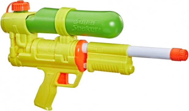 Patirkite puikų vasaros smagumą su vandens pistoletu NERF SUPER SOAKER XP50. Dėl ilgo vamzdžio ir oro slėgio sistema pasižymi puikiu nuotoliu ir srovės kontrole. Atsukamas viršutinis bakelis talpina daugiau vandens, tad galėsite ilgiau žaisti be dažno pildymo.
