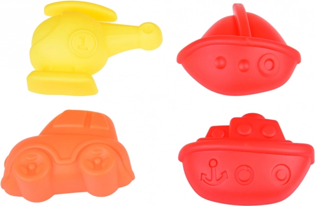 Rinkinyje rasite kibirą, laistytuvą, semtuvėlį, grėbliuką ir 4 lygias formeles sraigtasparnio, automobilio, burinės valtelės ir garlaivio formų.