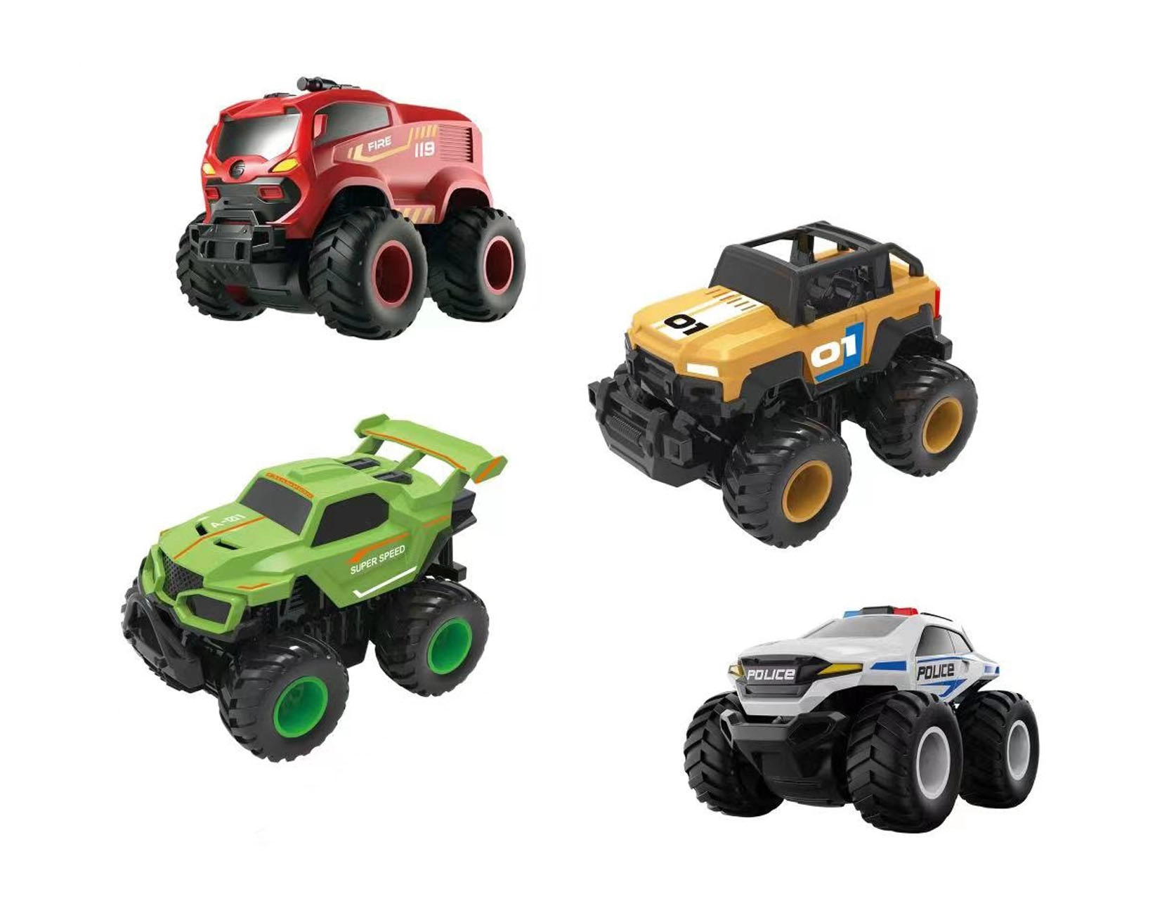 Pasiruoškite pramogoms su keturiais skirtingais mūsų Big Foot automobilio dizainais. Kiekvieno automobilio ilgis yra 13 cm, todėl jis idealiai tinka žaidimams tiek viduje, tiek lauke.